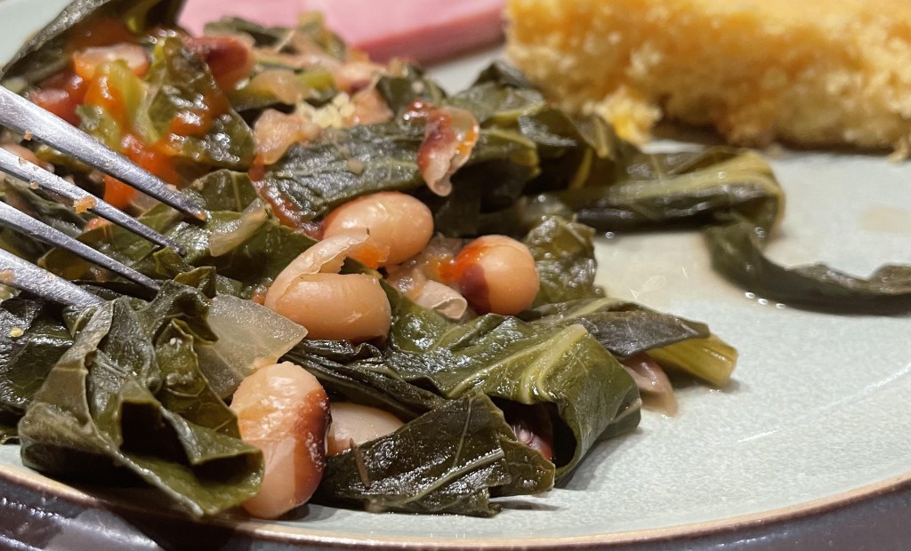 After the excitement of the night, the day after New Year’s was just as special. We would bundle up and head to my granny’s house, where she would serve the traditional New Year’s Day meal. Granny always made sure we had a plate of black-eyed peas and collard greens. According to tradition, eating these foods on New Year’s Day would bring good luck and prosperity in the year ahead. The collard greens, with their rich green leaves, were said to represent the green of dollar bills, symbolizing financial growth and prosperity. The black-eyed peas, small and round, symbolize coins, bringing wealth and good fortune. And of course, the ham hocks added that bit of flavor and richness that made the meal feel like a warm hug on a cold winter day.